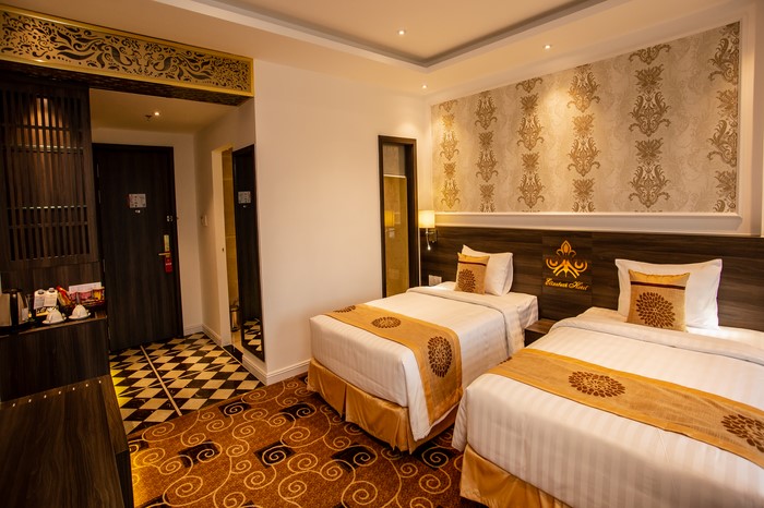 Built in a royal architectural style on a spacious 2,400 m² property, the 4-star hotel features elegant guest rooms, conference halls, restaurants, and a wide range of modern facilities, catering to both business and leisure travelers.We provide complimentary services such as a swimming pool, gym, and modern in-room amenities.